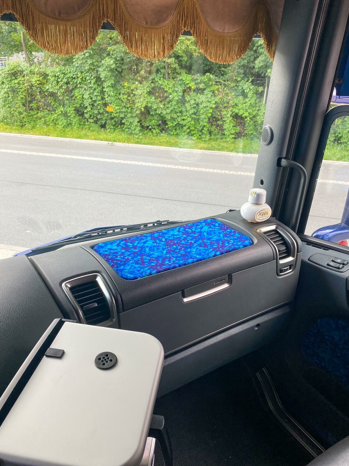 Dasboardplank midddentafel Scania R2 bekleed met deense pluche
