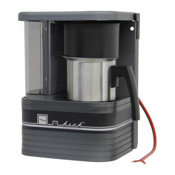 Koffiezetapparaat van Kirk speciaal ontworpen voor de vrachtwagen. De buitenkant van het koffiezetapparaat is gemaakt van geanodiseerd aluminium en de koffiekan is gemaakt van roestvrijstaal. De koffiekan heeft een capaciteit van 6 kopjes en kan stevig neergezet worden in een putje zodat de deze niet omvalt tijdens het rijden. Het koffiezetapparaat heeft een spanning van 24 volt en een vermogen van 500 Watt. Het apparaat beschikt over een bodemmontage en een wandmontage waardoor de machine bevestigd kan worden aan dashboardtafels en koffiezettertafels.
