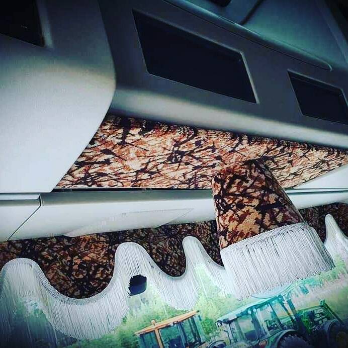 Lampenkapje met SCANIA VABIS logo bekleed met alcantara